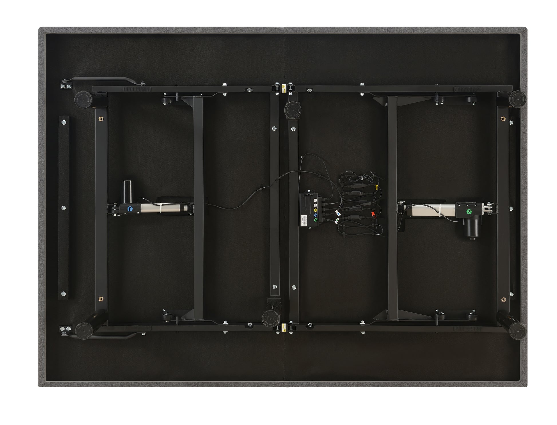 This adjustable bed base offers complete relaxation and support with various ergonomic positions.Upholstered in a two-tone off-white and grey upholstery, this bed base lends an understated look and works with existing color palettes.A wireless remote offers customized adjustments with a backlit soft-touch controls on its wireless remote, making it easy to find at night.Supporting the adjustable piece is a metal base support coated in a black finish.This raised bed base also offers a spacious area beneath to keep items and boxes stored.