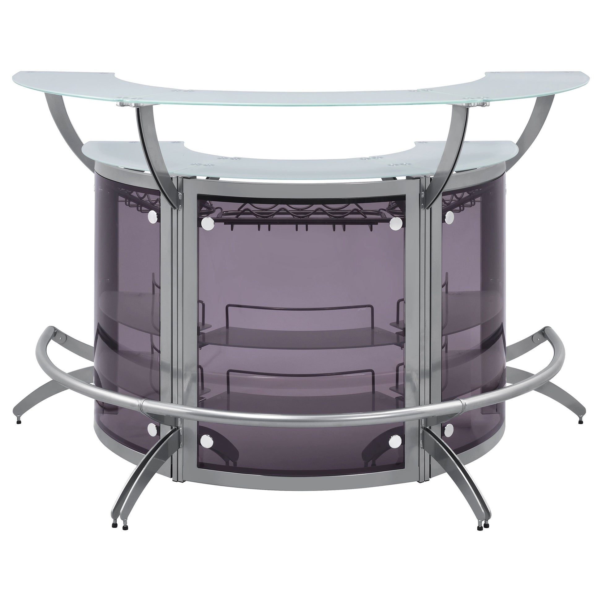 Dallas 3-piece Curved Freestanding Home Bar Silver and Frosted Glass