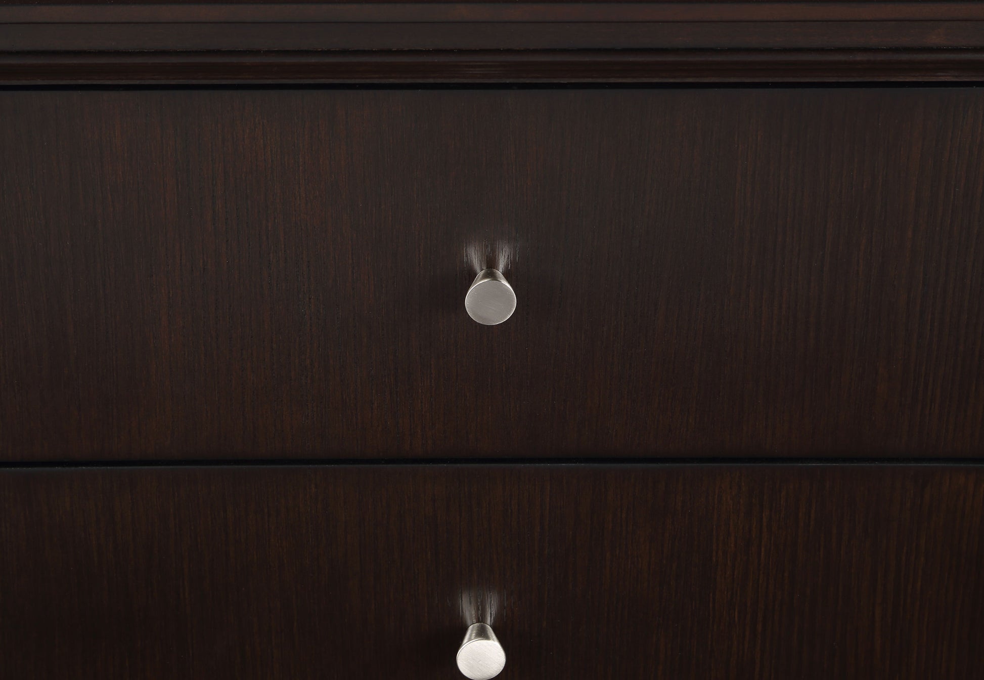 Gleaming knobs and foot caps add contrast and character to a modern five-drawer chest. Its deep brown finish is sleek and refined, perfect for a stylish bedroom with sophisticated presence. Its five drawers offer abundant storage. The top drawer includes felt lining and the bottom drawer is lined in cedar for additional protection for delicate items like jewelry and seasonal sweaters. The top of the chest is perfect for decor, offering a spot for a personal touch in your bedroom.