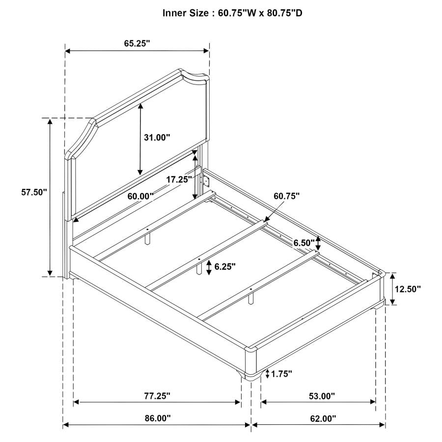 Includes: One (1) queen bed, one (1) nightstand, one (1) dresser, one (1) dresser mirror, and one (1) chest of drawers