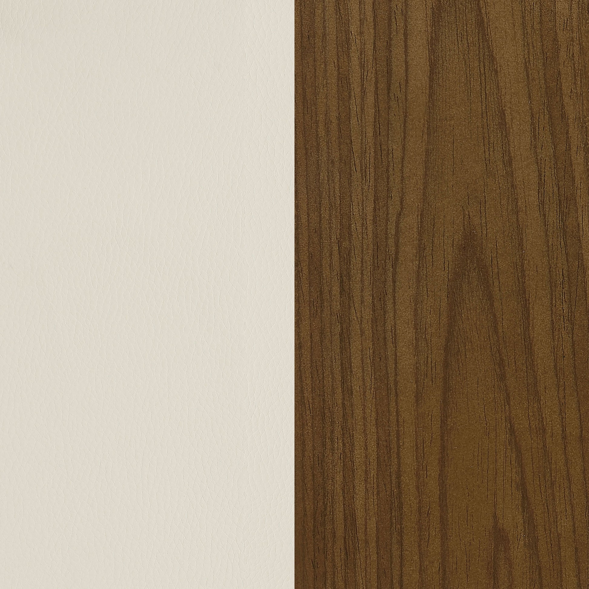 - Upholstered in a soft, ecru leatherette and accented by natural tones of walnut, it blends effortlessly with most any style of decor