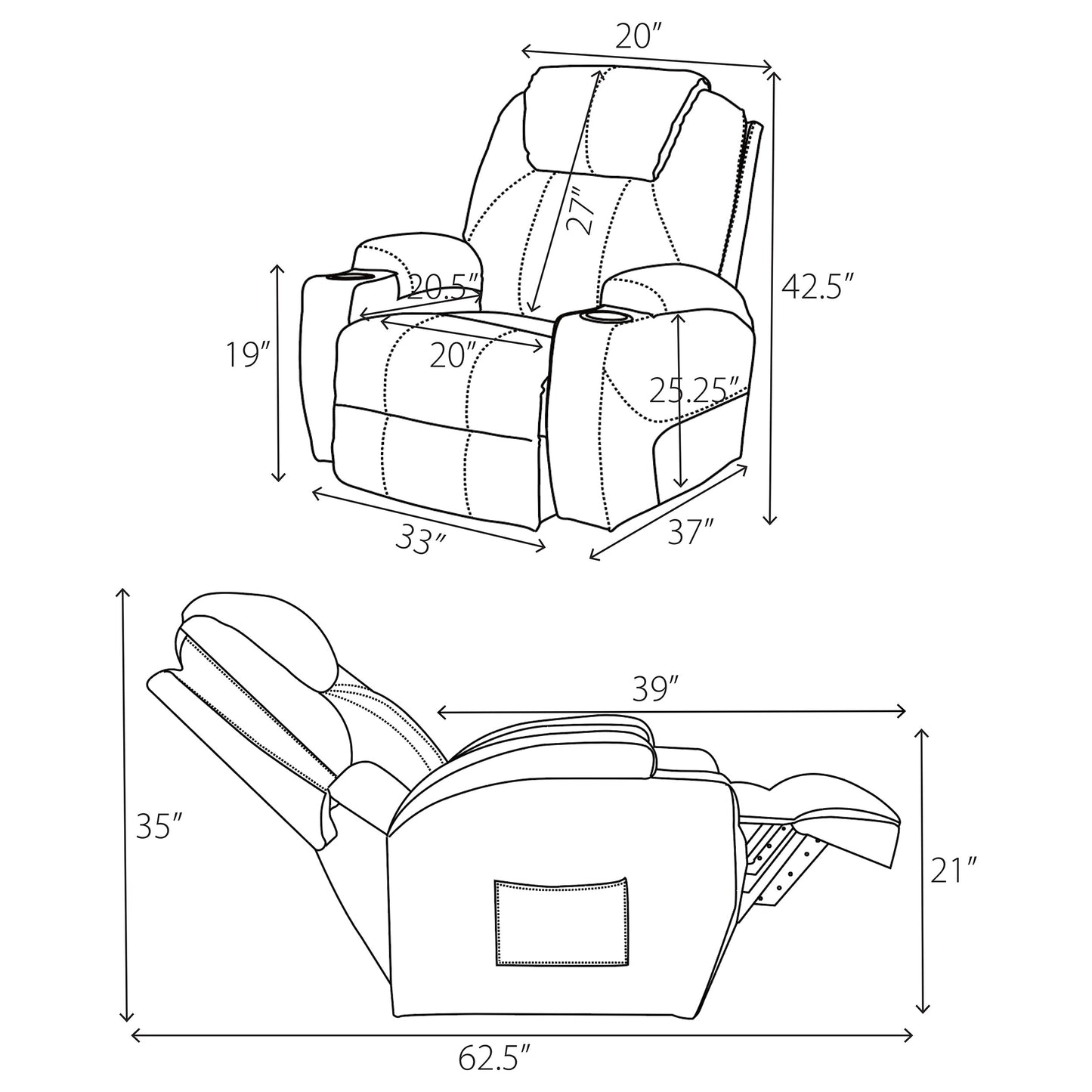 - Armrests include cupholders perfect for beverages or stashing your phone